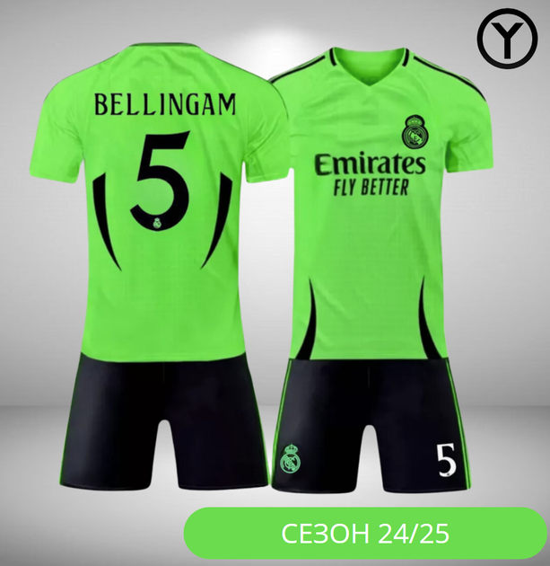 Форма футбольна дитяча Bellingham №5 Реал Мадрид (Real Madrid) 2025, р.20 ріст-115-125 см. (салатова)