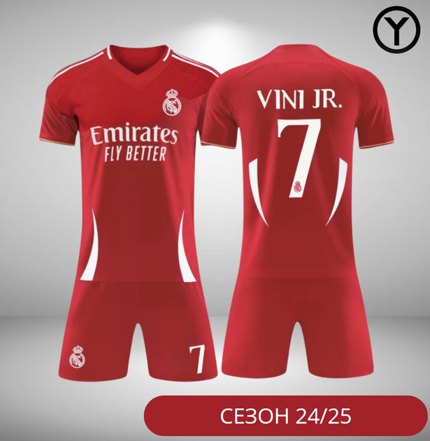 Форма футбольна дитяча Vini jr. №7 Реал Мадрид (Real Madrid) 2025, р.20 ріст-115-125 (червона)