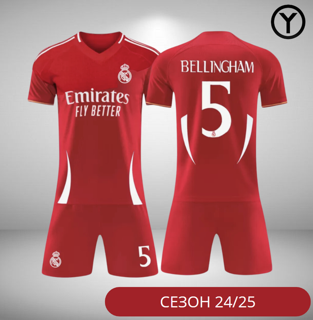 Форма футбольна дитяча Bellingham №5 Реал Мадрид (Real Madrid) 2025, р.22 ріст-125-135 (червона)