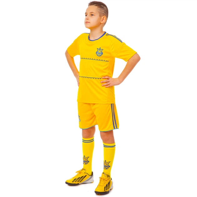 Форма футбольна дитяча комплект футболка шорти та гетри з символікою збірної УКРАЇНА SP-Sport 1006-13B-ETM1721 L жовтий