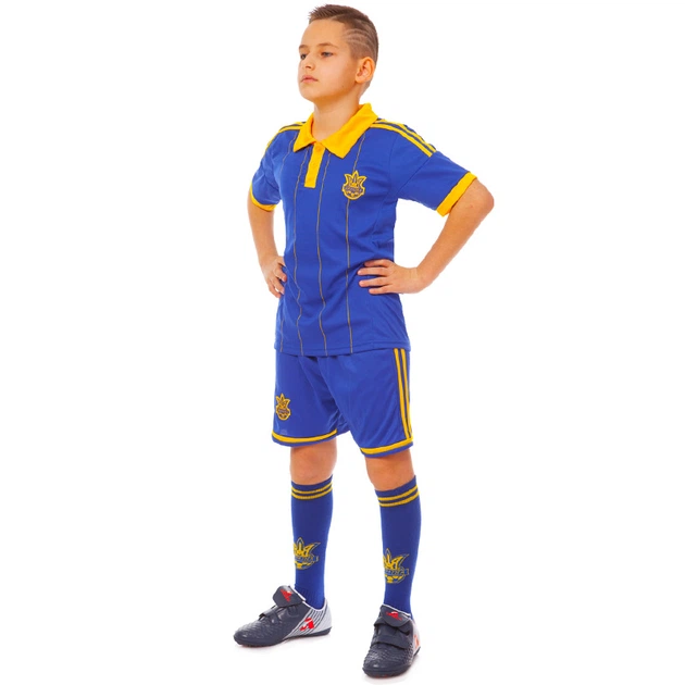 Форма футбольна дитяча комплект футболка шорти та гетри із символікою збірної УКРАЇНА (PL, р-р L-28, Синій) (3900-16B-ETM172