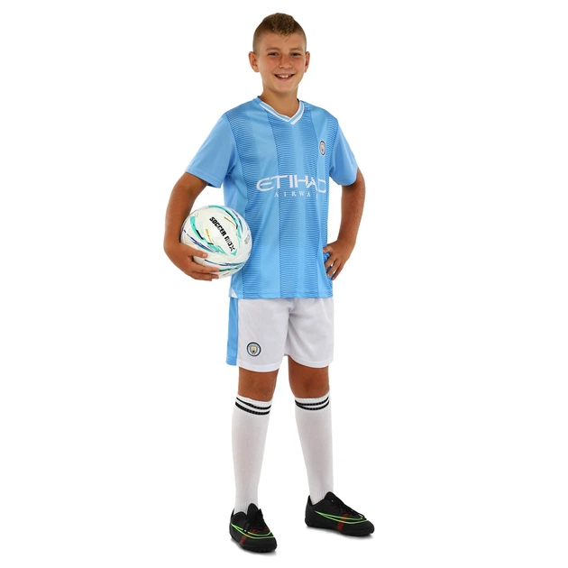 Форма футбольна дитяча блакитно-біла із символікою клубу MANCHESTER CITY 2024 S 125-135 см Zelart CO-7184