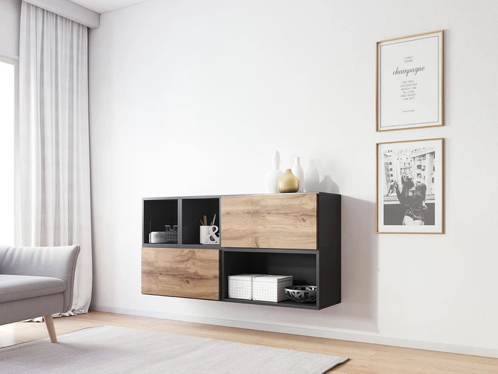 Вітальня стінка комплект з ламінованої ДСП Roco 15 Антрацит/Дуб Вотан Сама Польща без підсвічування