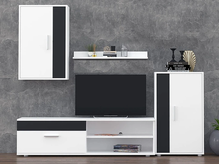 Вітальня Тумба під телевізор Барато міні із ДСП Gerbor Німфеа альба/Чорний