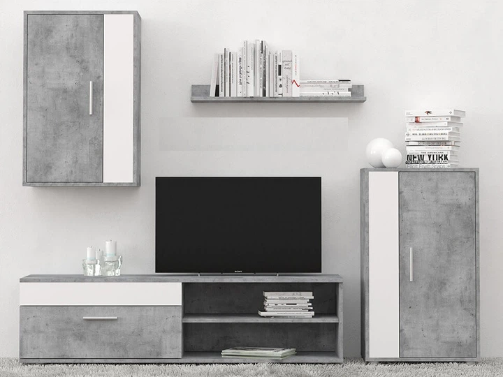 Вітальня Тумба під телевізор Барато міні із ДСП Gerbor Бетон/Німфеа альба