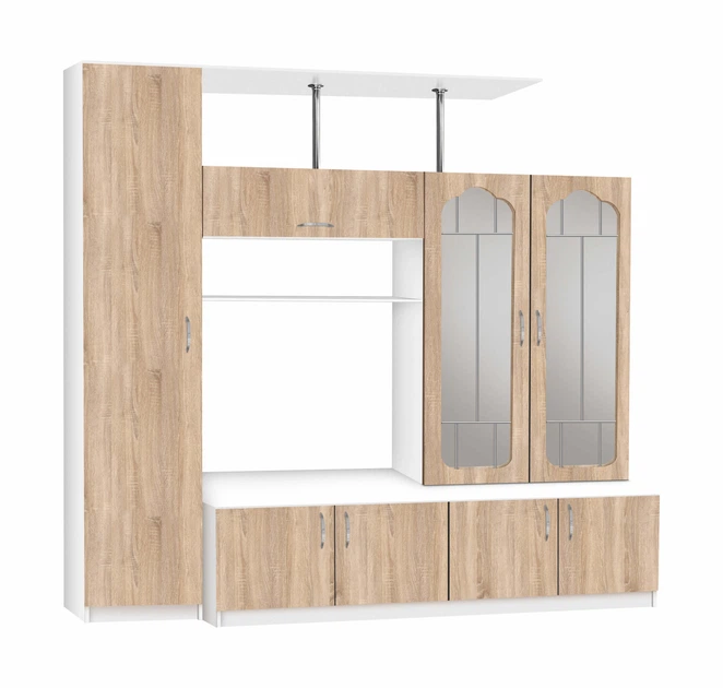 Стінка Аліса (два фасади зі склом) МАКСІ-МЕБЛІ Білий гладкий/Дуб сонома (5102102)