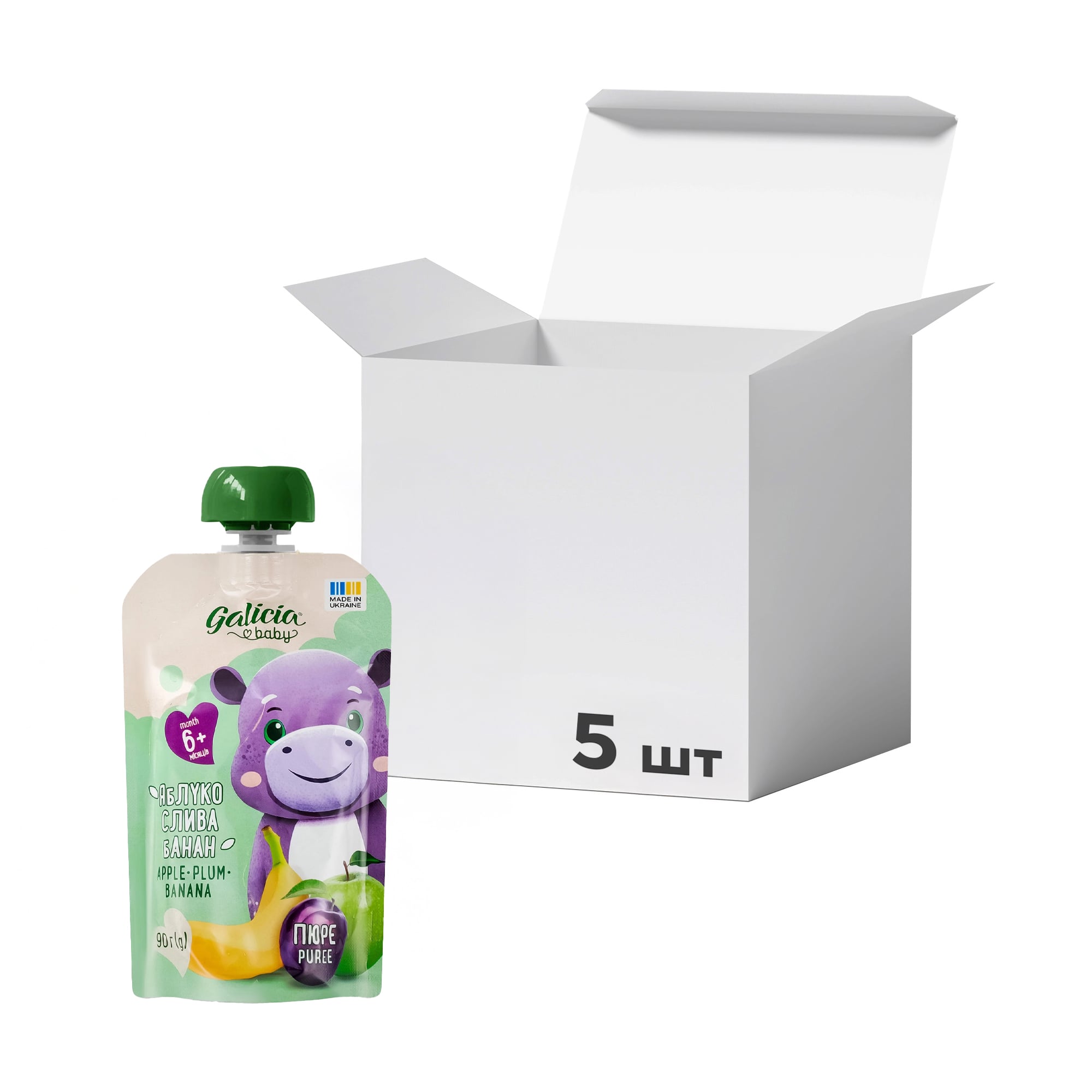 Упаковка дитячого пюре Galicia Baby Яблуко-слива-банан, від 6 місяців, 90 г * 5 шт