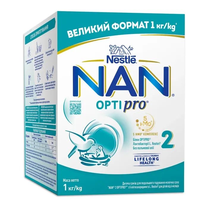 Дитяча суміш Nestle NAN 2 Optipro з 5 олігосахаридами та L. Reuteri від 6 місяців 1 кг (1000075) 1000075