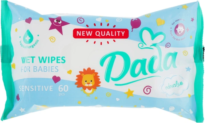 Вологі салфетки для дітей, без запаху - Dada Sensitive Wipes 60шт (665011-28124358)