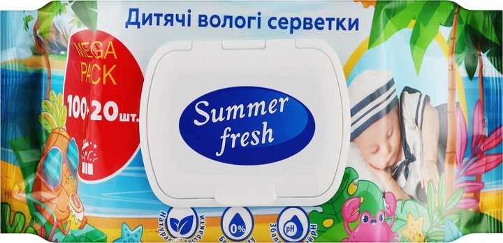 Дитячі вологі салфетки з екстрактом ромашки та алое вера, без спирту, 100+20 шт. - Summer Fresh 120шт (1416466-27060059)