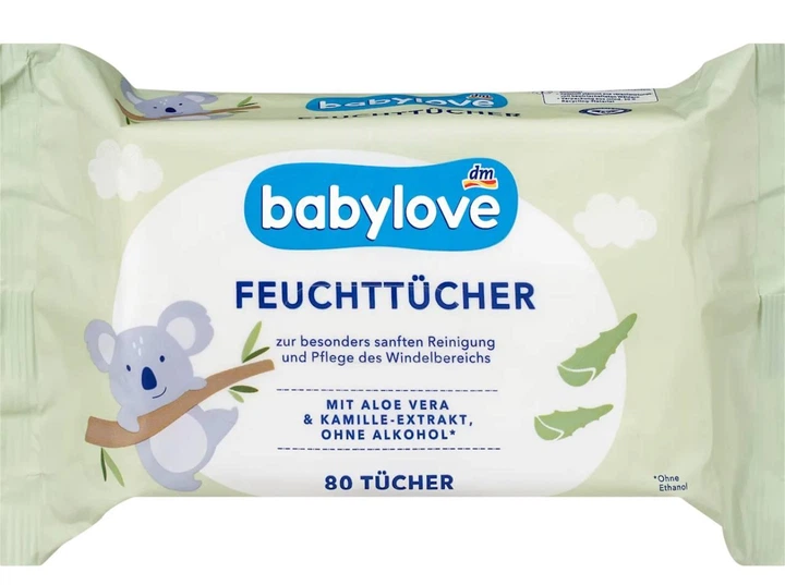 Дитячі вологі серветки Babylove Dm Feuchttucher з екстрактом алое вера та ромашки 80 шт