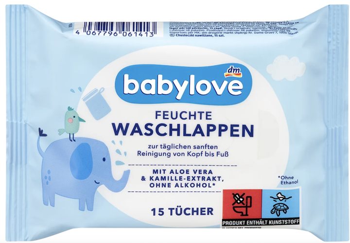 Серветки Babylove вологі для догляду за немовлятами, 15 шт