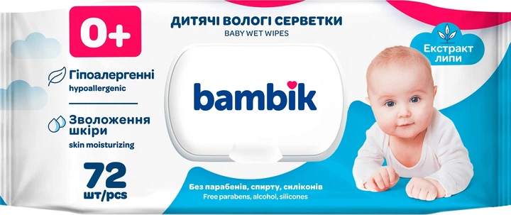 Дитячі вологі серветки з екстрактом липи, 72шт. - Bambik Baby Wet Wipes 72шт.
