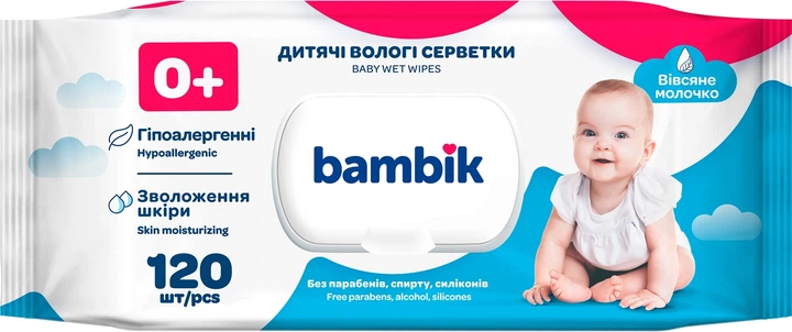 Дитячі вологі салфетки з вівсяним молочком, 120 шт. - Bambik Baby Wet Wipes 120шт (817994-27234176)
