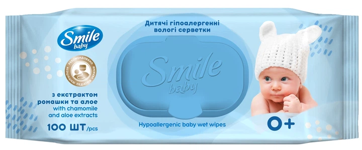 Салфетки вологі SMILE Baby 100 штук в упаковці з клапаном