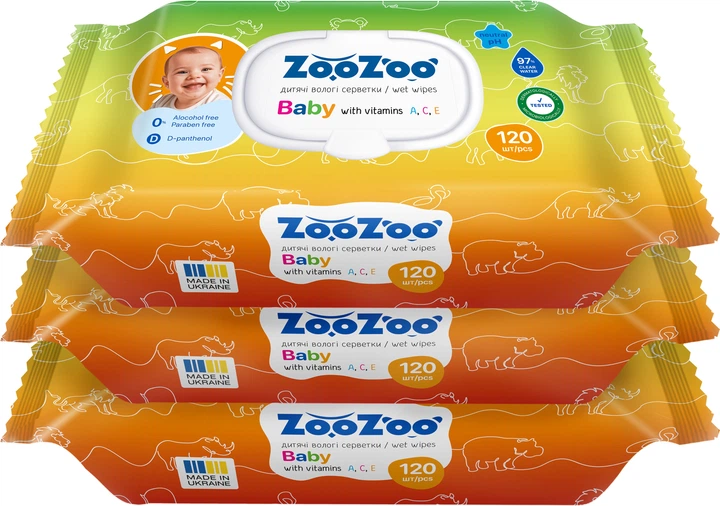 Упаковка вологих серветок дитячих ZooZoo Вітаміни 120 шт х 3 пачки (4820183974433)