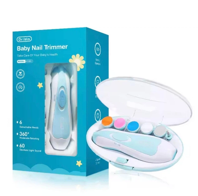 Дитячий триммер для нігтів Dr. Isla + 6 насадок, на батарейках, електрична машинка для стрижки дитячих нігтів блакитний