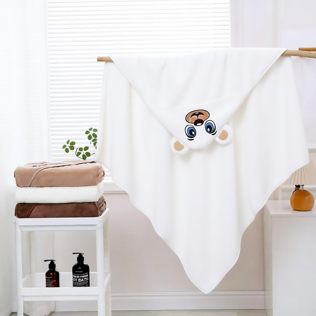 Дитячий рушник-кутик для купання з капюшоном "Ведмедик" 90*90 см, мікрофібра,білий