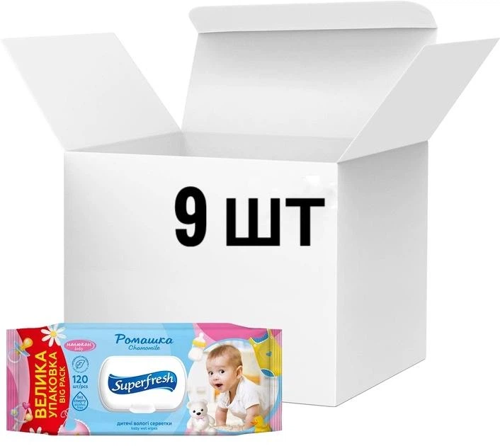 Упаковка вологих серветок Superfresh з клапаном 9 пачок по 120 шт.