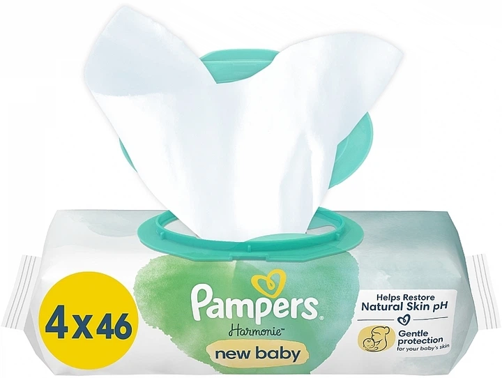 Дитячі вологі серветки, 4x46 шт. - Pampers New Baby Harmonie Body Wipes (1201463-27060955)