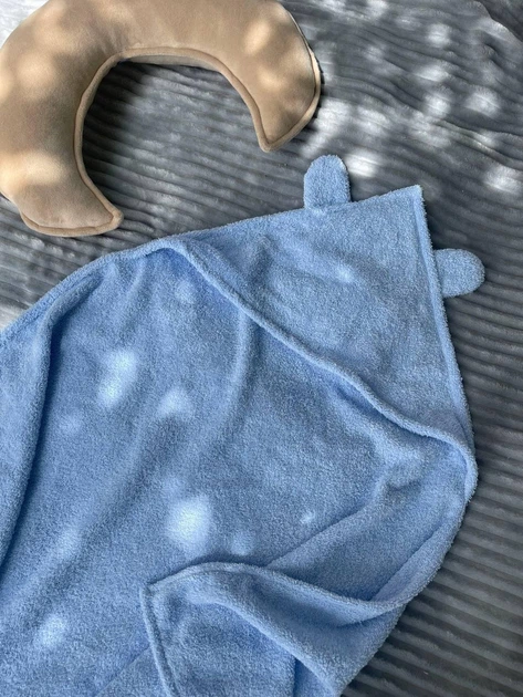 Дитячий махровий рушник з капюшоном та вушками для купання новонароджених 80х75см синій