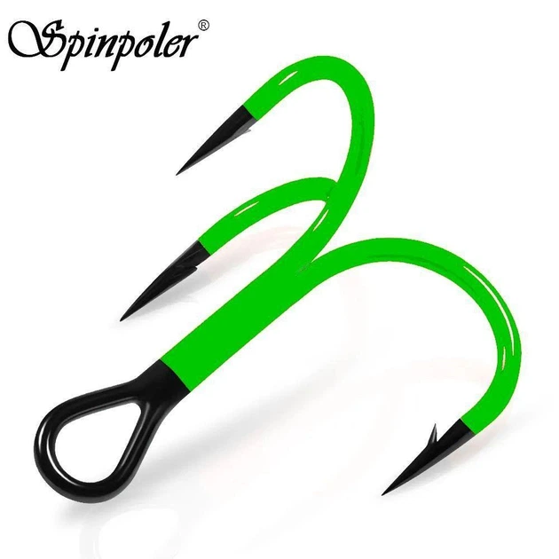 Гачки Spinpoler UV Green Treble Fishhook #3/0, 5 шт.