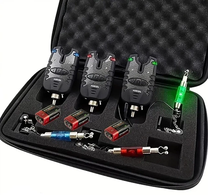 Набір з 3-х електронних сигналізаторів клювання і свингеров Hirisi B1138 в кейсі для риболовлі (313207)