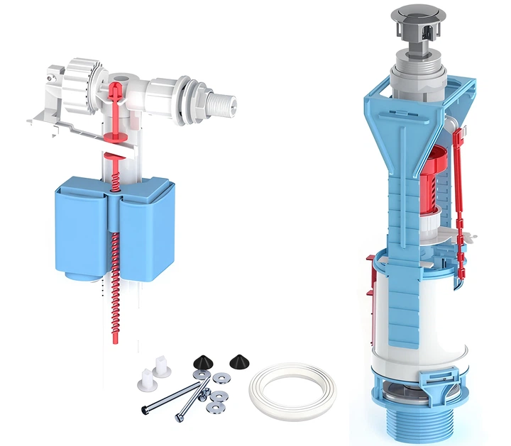 Комплект арматури для бачка унітазу АБ 69.57 Одноклавішний Нижнє підключення 1/2