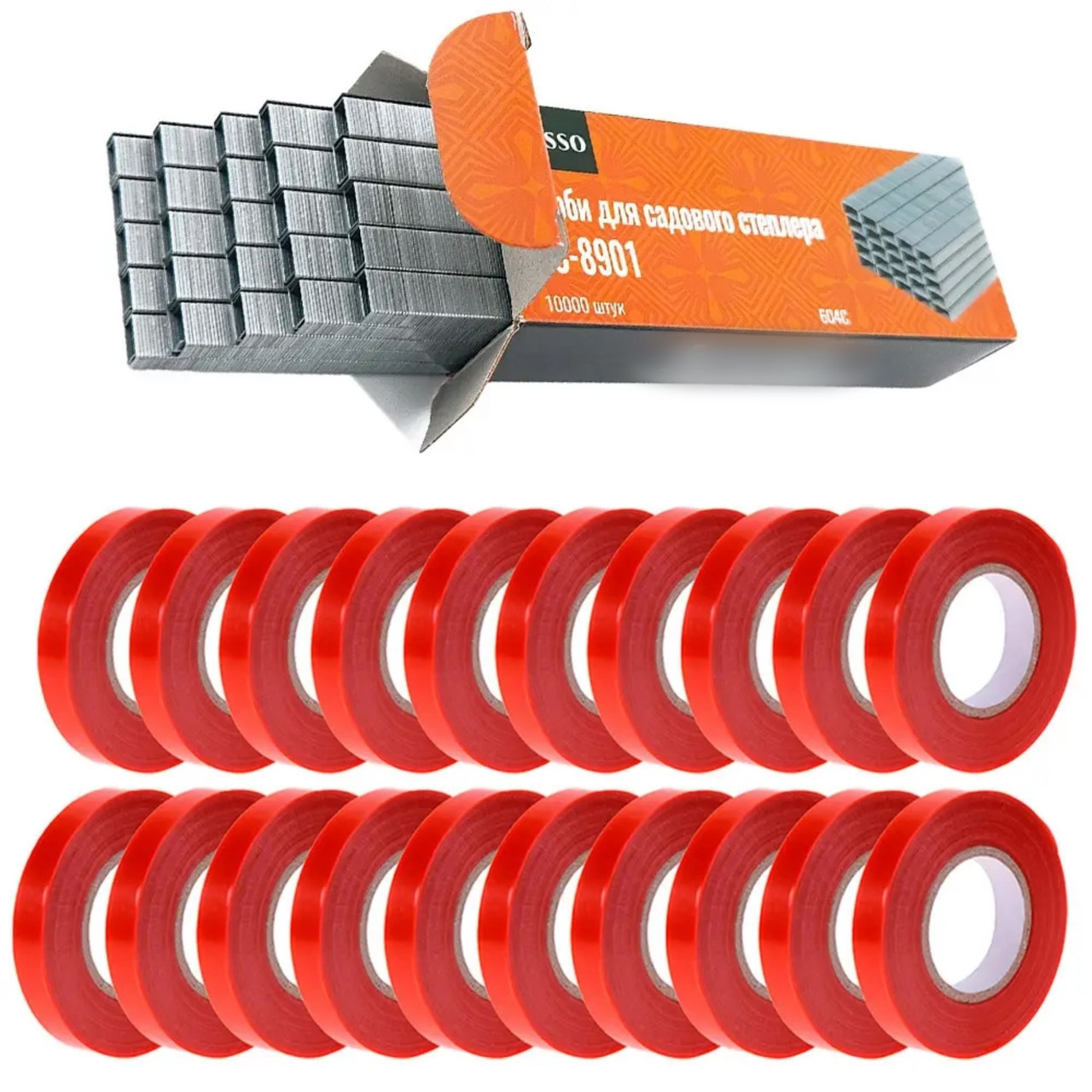 Набір для садового степлера тапенера: підвʼязочна стрічка 20 шт (600 м) + скоби (10000 шт)