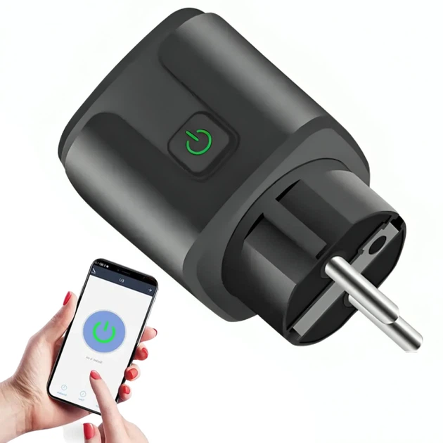 Розумна WiFi розетка 20А з лічильником електроенергії Tuya Smart 4400Вт, Чорна/Розетка з підключенням до телефону