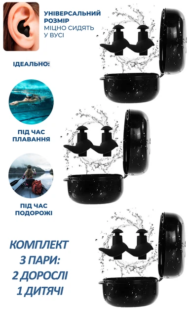 Беруші для плавання універсальні з кейсом для зберігання і затискачем для носа