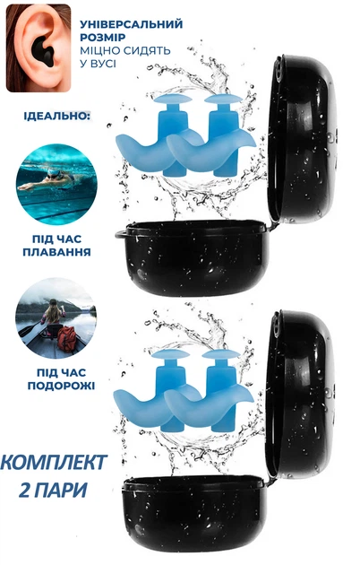 Беруші Універсальні VelaSport Комплект 2 пари для дорослих 32дБ Багаторазові затички у вуха Беруші для плавання, сну, роботи