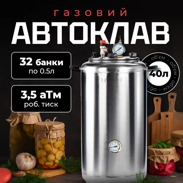 Автоклав газовий UTEHO ГУД-32 нержавійка 45 л 32 банки/0,5 л (843025343)