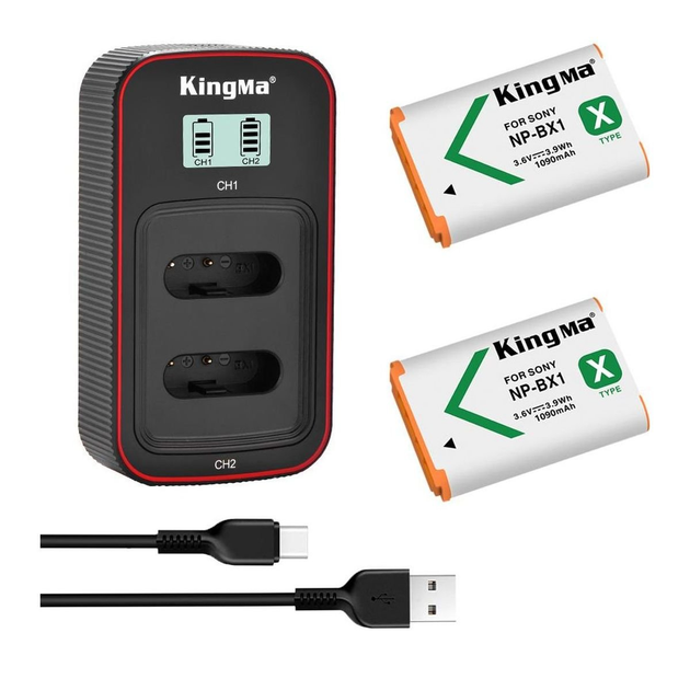 3-Pack KingMa NP-BX1 Комплект з 2 акумуляторів KingMa Sony NP-BX1 та зарядного пристрою на дві батареї з РК-дисплеєм