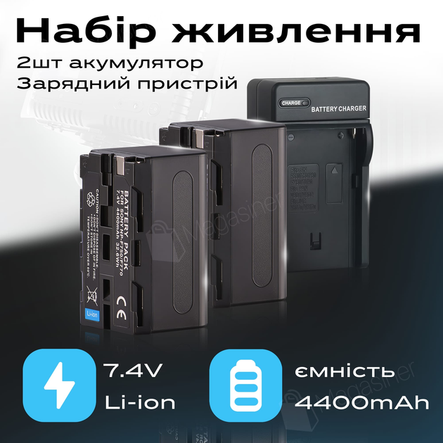 Комплект акумуляторів f750/f770 4400 mAh для відеосвітла із зарядним пристроєм (2670-4)