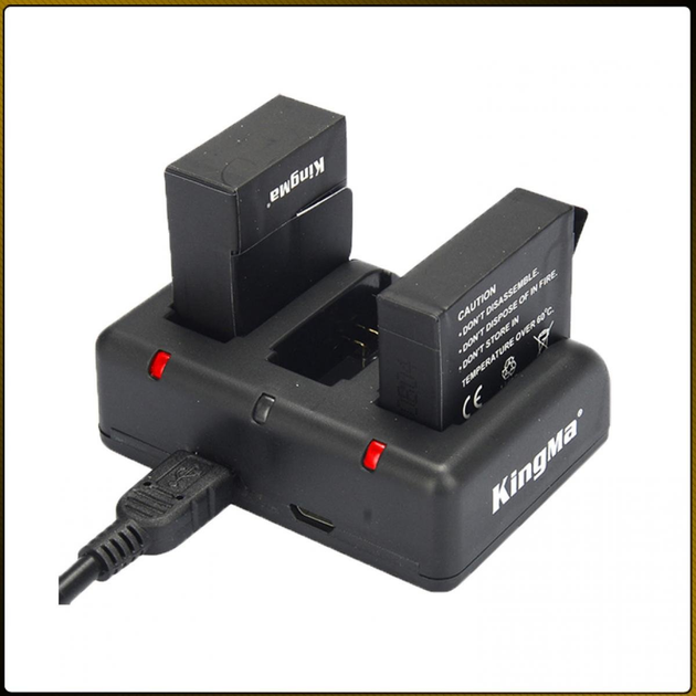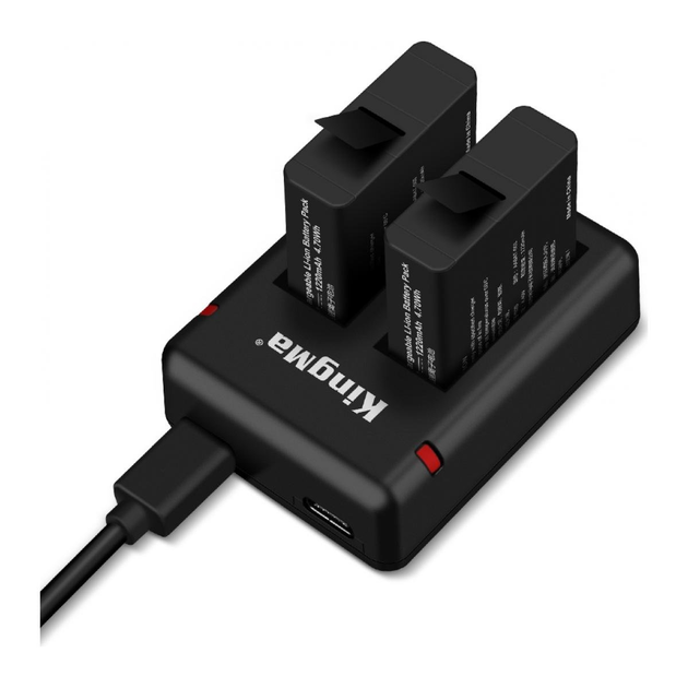 3-Pack KingMa AABAT-001 Комплект з 2 акумуляторів KingMa GoPro HERO5 HERO6 HERO7 та зарядного пристрою на дві батареї з РК-д