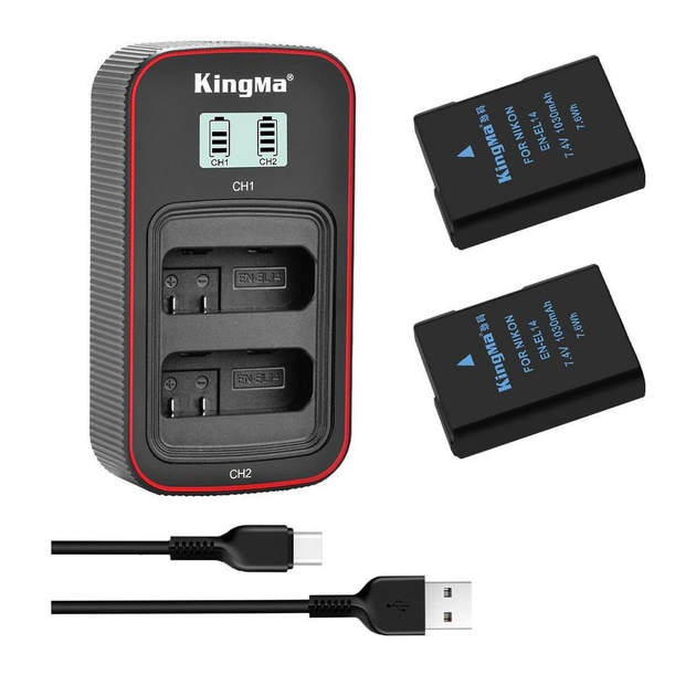 3-Pack KingMa EN-EL14 Комплект з 2 акумуляторів KingMa Nikon EN-EL14 та зарядного пристрою на дві батареї з РК-дисплеєм