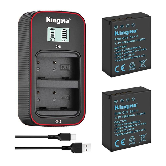 3-Pack KingMa BLH-1 Комплект з 2 акумуляторів KingMa Olympus BLH-1 та зарядного пристрою на дві батареї з РК-дисплеєм