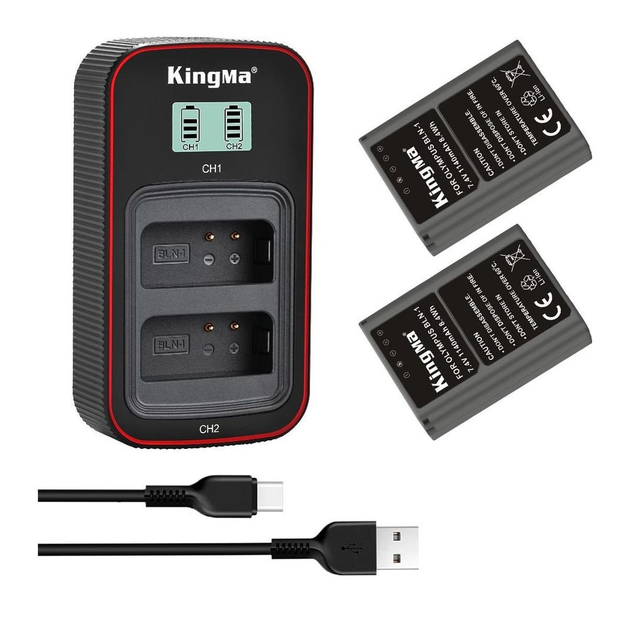 3-Pack KingMa BLN-1 Комплект з 2 акумуляторів KingMa Olympus BLN-1 та зарядного пристрою на дві батареї з РК-дисплеєм