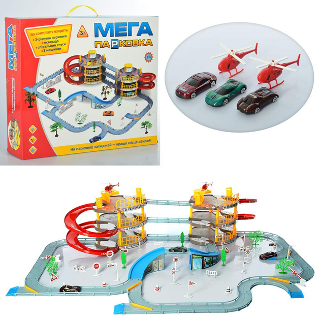 Гараж Метр+ 3 поверхи машинка вертоліт дорожні знаки 922-12 METR+