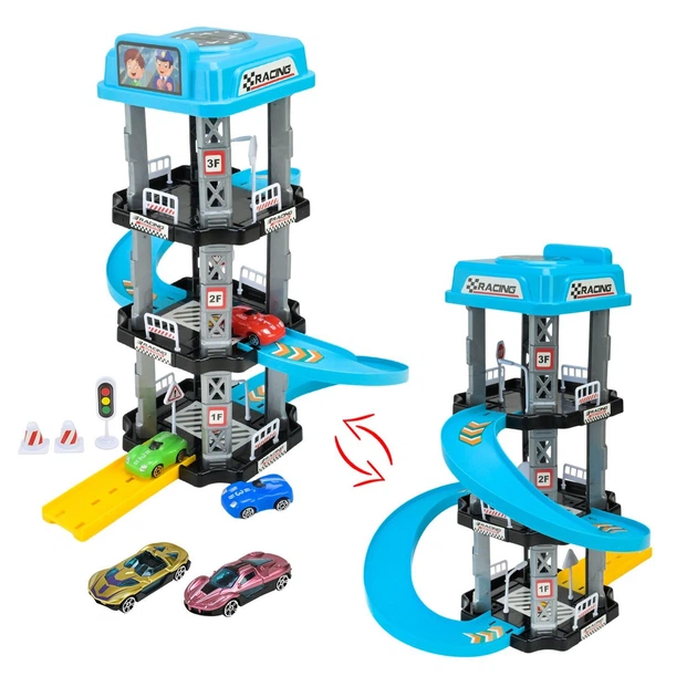 Паркінг триповерховий HOT 3 рівня, з дорожніми знаками та наклейками, 3 машинки + 2 гоночні модельки 8996-1A