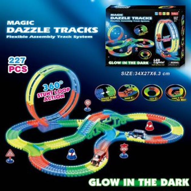 Ігровий трек 2 машини, працює від батарейок, світиться в темряві, D663-602 DIY