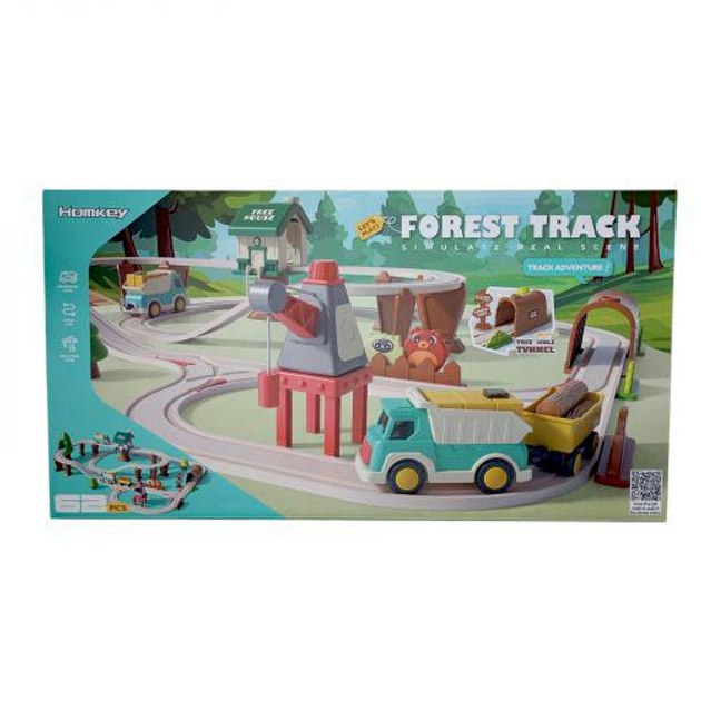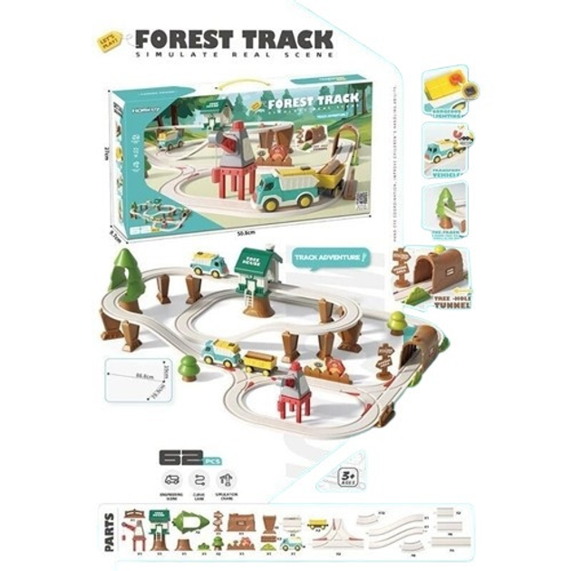 Трек 62 елементи, магнітне з'єднання, вантажівка, 2 причепи, 2 вантаж, на батарейках, трек, аксесуари, в коробці (TS01091996