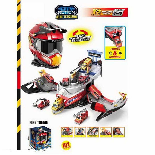Гараж SK 637 XB – шолом-трансформер із світлозвуковими ефектами, 2 машинки, у коробці