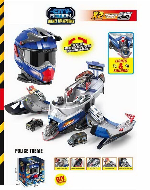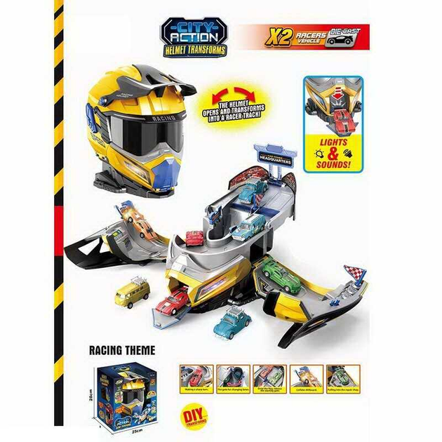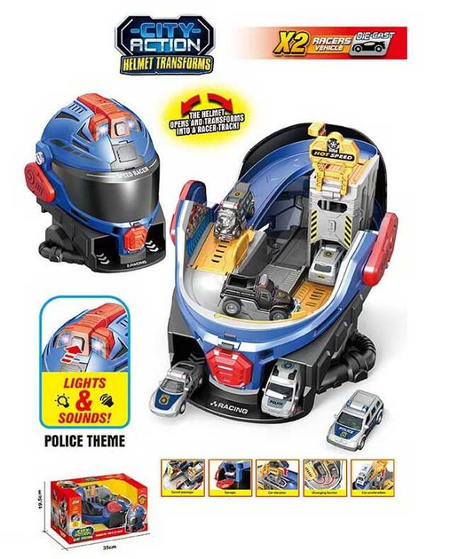 Гараж SK 637 JB – шолом-трансформер із світлозвуковими ефектами, 2 машинки, у коробці