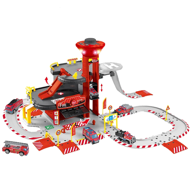 Ігровий Набір Пожежника Дитячий Гараж Для Машинок з Парковкою та Ліфтом на 3 поверхи "Пожежна Станція" Три Машинки зі Світло
