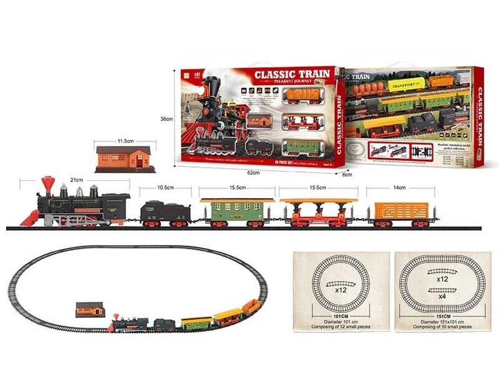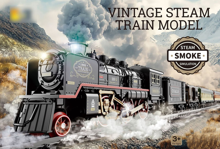 Дитяча залізниця з парою підсвічуванням і звуковими ефектами Vintage Steam Train 92,5 х 137.5 см Вид 1