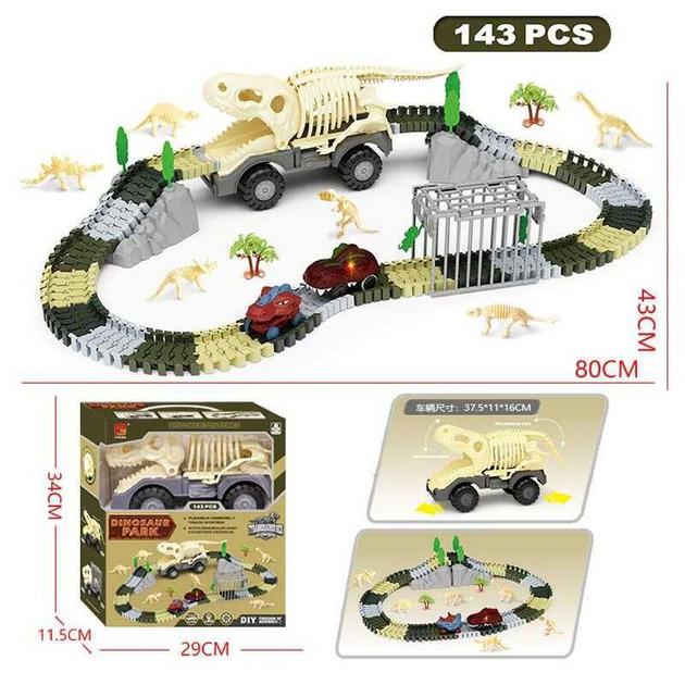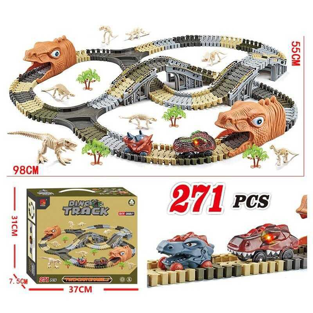 Трек P 931, 271 елемент, 2 машинки, підсвічування, муляжі оточення, фігурки динозаврів