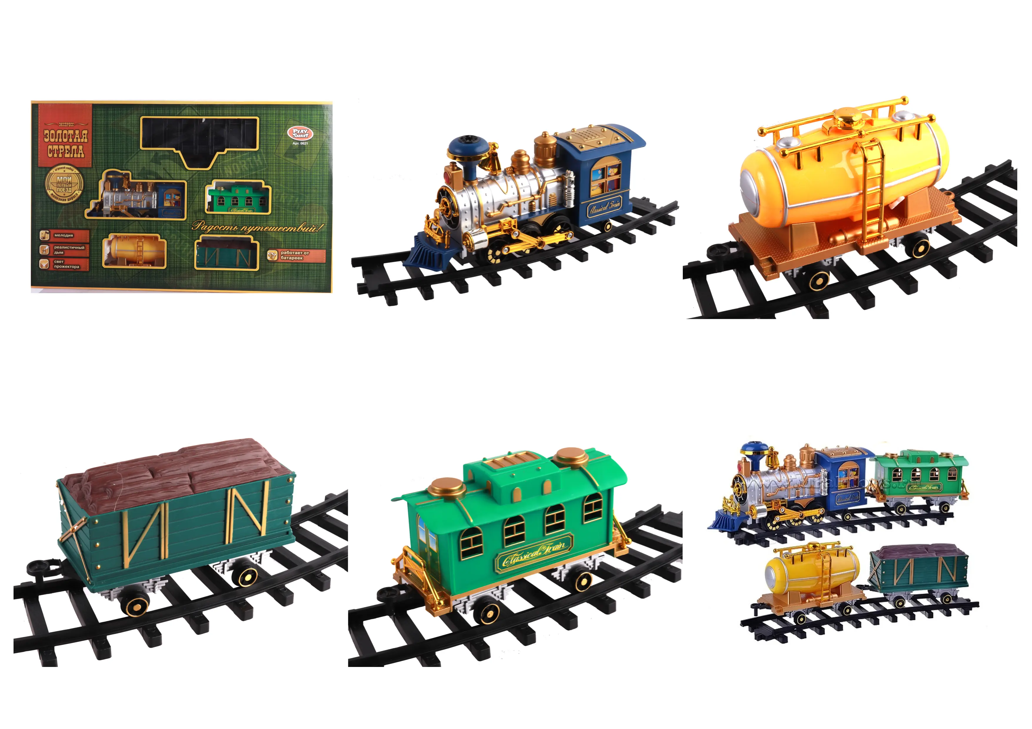 Іграшкова залізниця Особливості: - іграшковий набір містить 21 деталь; - потяг працює від 2-х батарейок типу “АА” (не додаються); - виконаний у ретро стилі; - на корпусі паротяга розташована кнопка ввімкнення; - потяг обладнаний звуковими ефектами та підсвічуванням; - до паротяга приєднуються 4 різні вагони; - чудова деталізація додає іграшці максимальної реалістичності. Ціна вказана за 1 набір Вид/колір може бути одним із запропонованих. Виробник: Китай