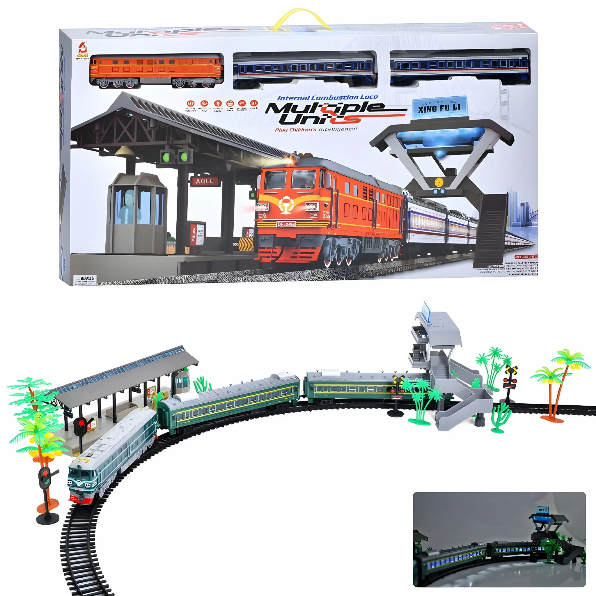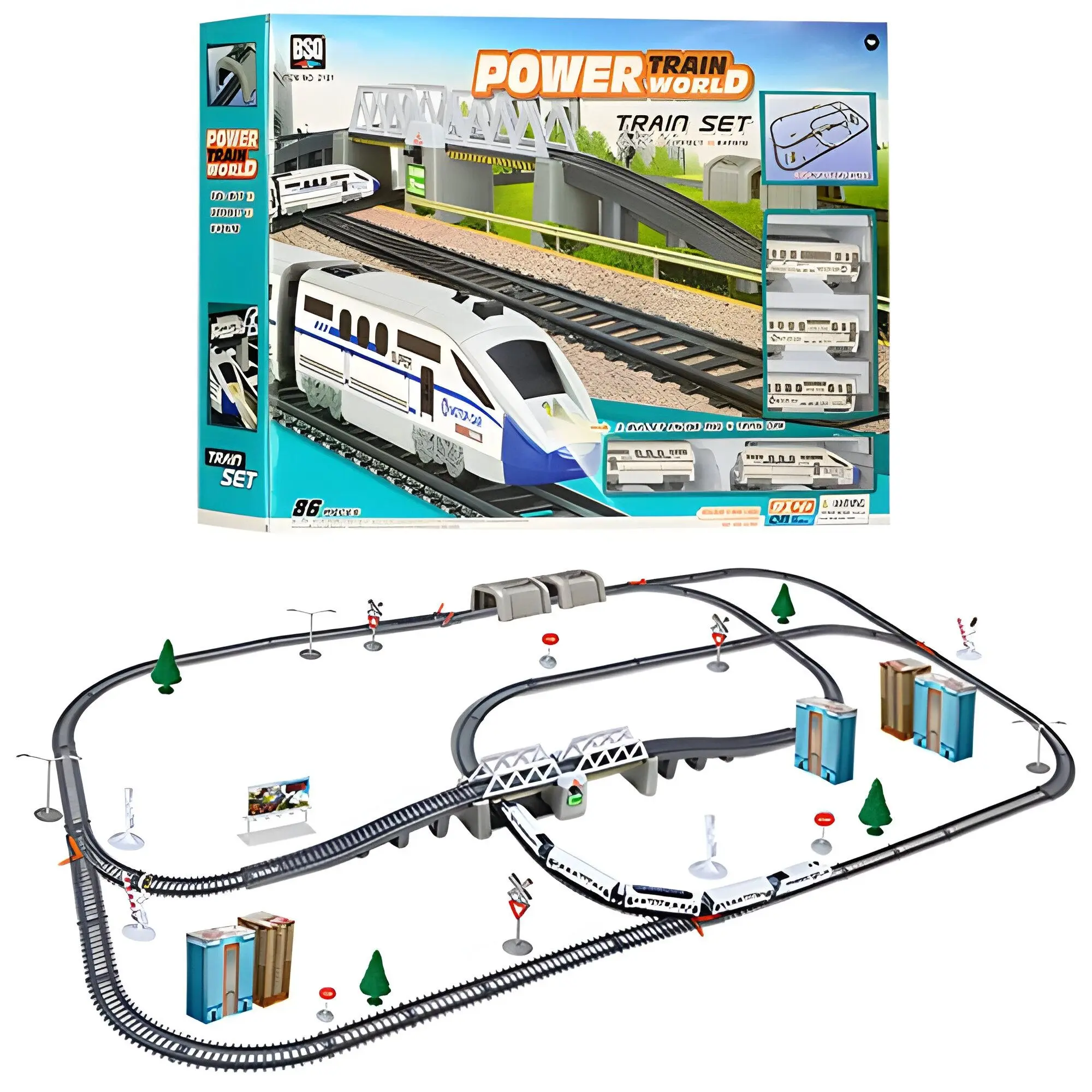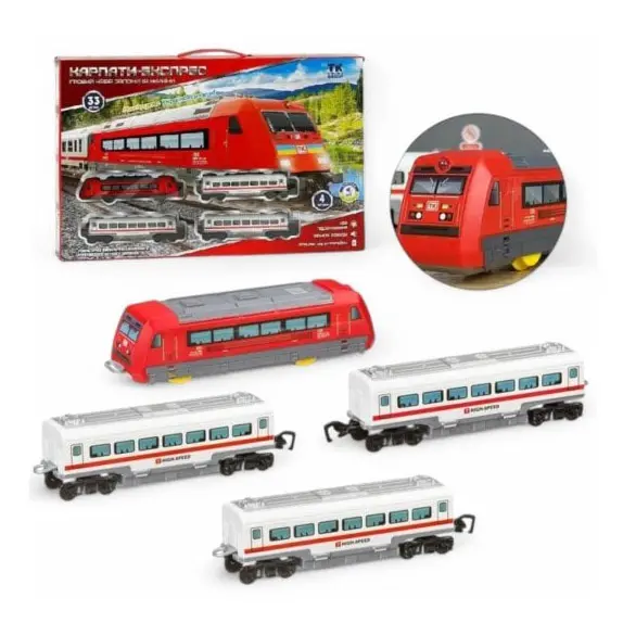 Іграшкова залізниця з безліччю різних елементів — велика мрія кожного хлопчика. Деталізований набір приведе хлопчика у повний захват, адже він включає 108 різних елементів, які потрібно зібрати самостійно: 3 вагони, шляхи великої довжини, тематичні наліпки та зелені дерева. Для максимально яскравої гри, іграшка передбачає додаткові світлові ефекти: натисніть на кнопку, яка розміщена на даху головного вагону, і почнеться справжня магія: потяг почне стрімко рухатись по колії, з яскравим відсвічуванням. Повторне натискання на ту ж саму кнопку призведе й до його зупинки. Країна виробник: Китай